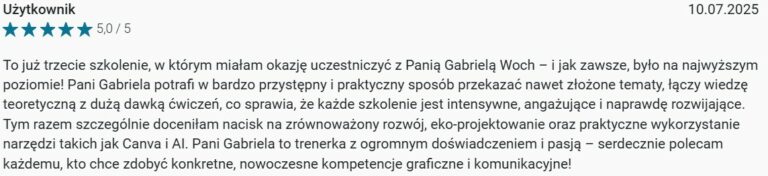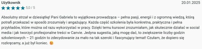 - Praktyka i doświadczenie Zapomnij o nudnej teorii. Już od 7 lat prowadzę praktyczne warsztaty, na których uczę wyłącznie tego, co sama stosuję na co dzień w biznesie. Zdobędziesz konkretne umiejętności, a nie tylko wiedzę.